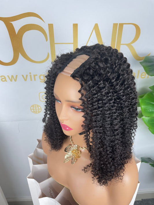 Top Virgin U-part Wig 180% 210%Density - Kinky Curly #1B
