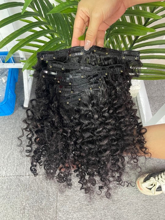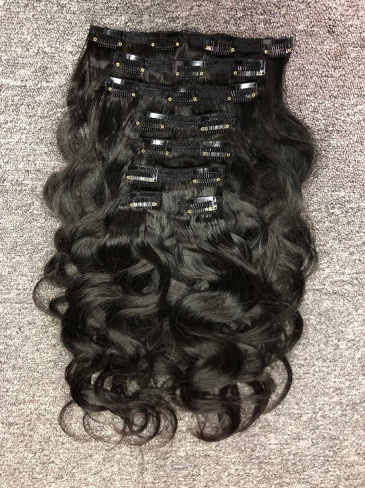 Top Virgin Classic Clip in Extension #1B - Loose Curly