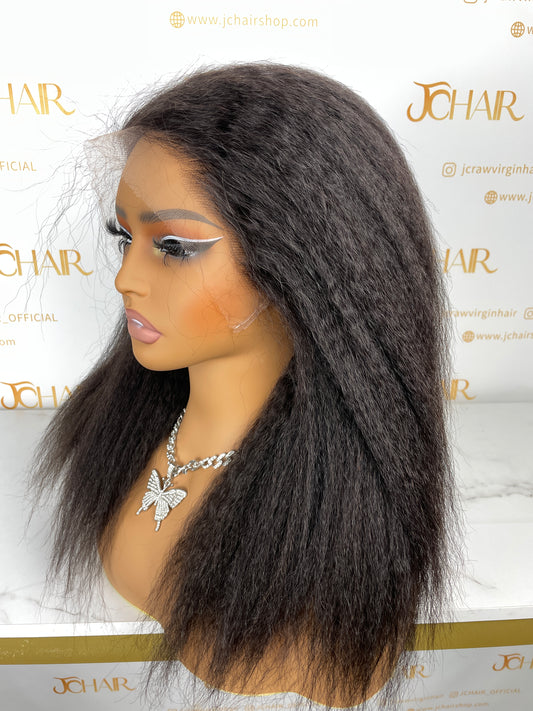 Top Burmese Virgin Hair 13x4 13x6 HD Full Frontal Wig - Kinky Straight #1B