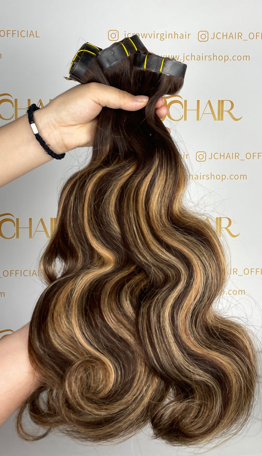 body wave Seamless Clip in Hair Extention #4/27