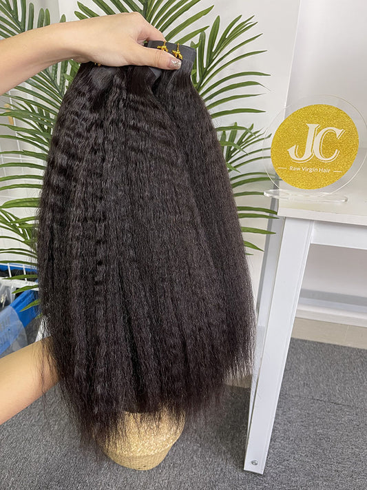 Kinky Straight Seamless Clip in Hair Extention #1B