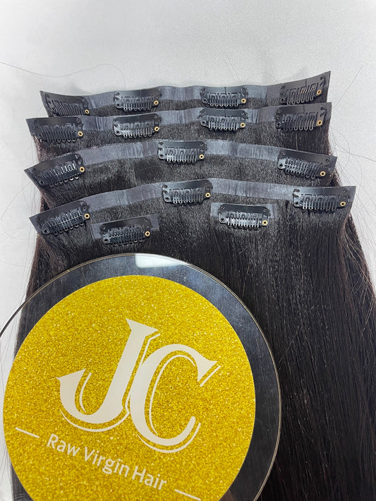 Yaki Straight Seamless Clip in Hair Extention #1B
