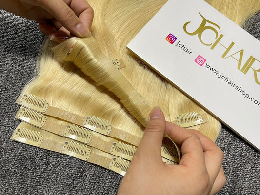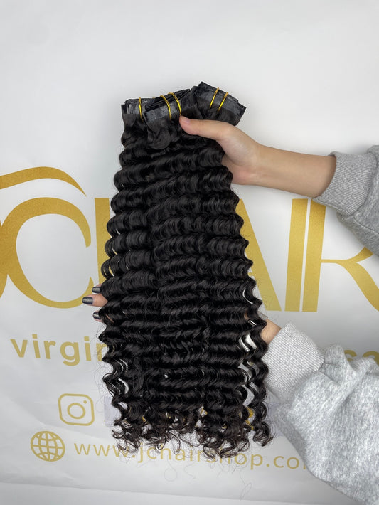 Deep Wave Seamless Clip in Hair Extention #1B