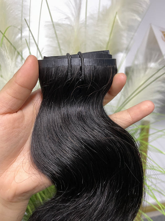 Small PU Seamless Clip in Extension #1B - Body Wave