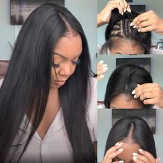 Top Virgin V-part Wig 180% 210%Density - Straight #1B