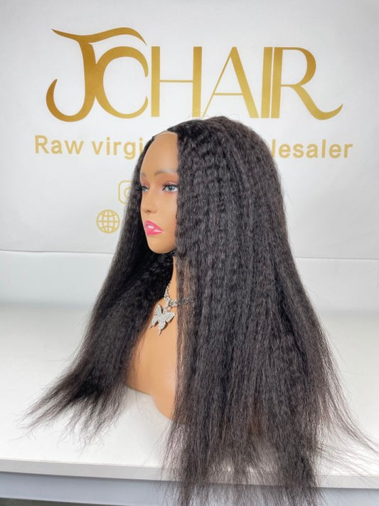 Top Virgin V-part Wig 180% 210%Density - Kinky Straight #1B